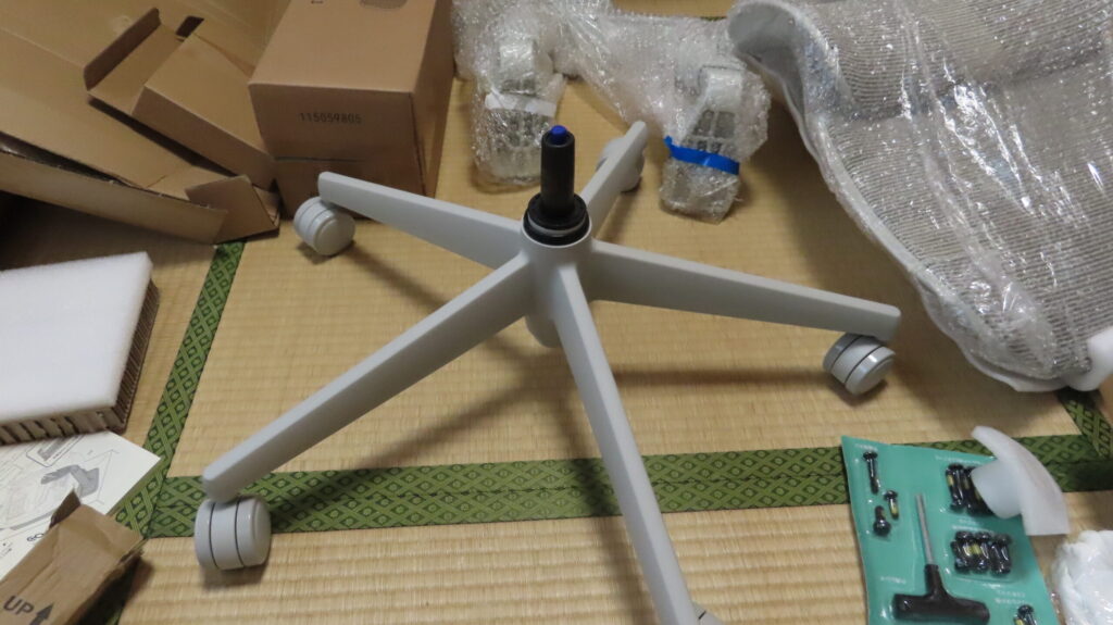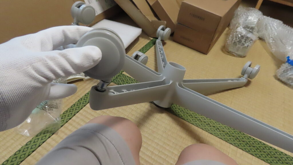 足の部分は、はしっこにキャスターを5個、パコパコはめていくだけ。