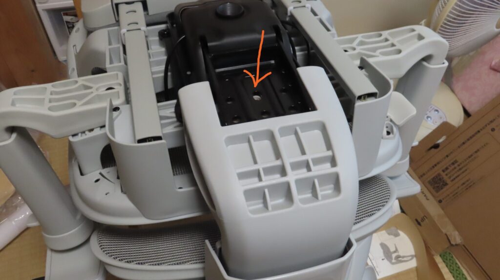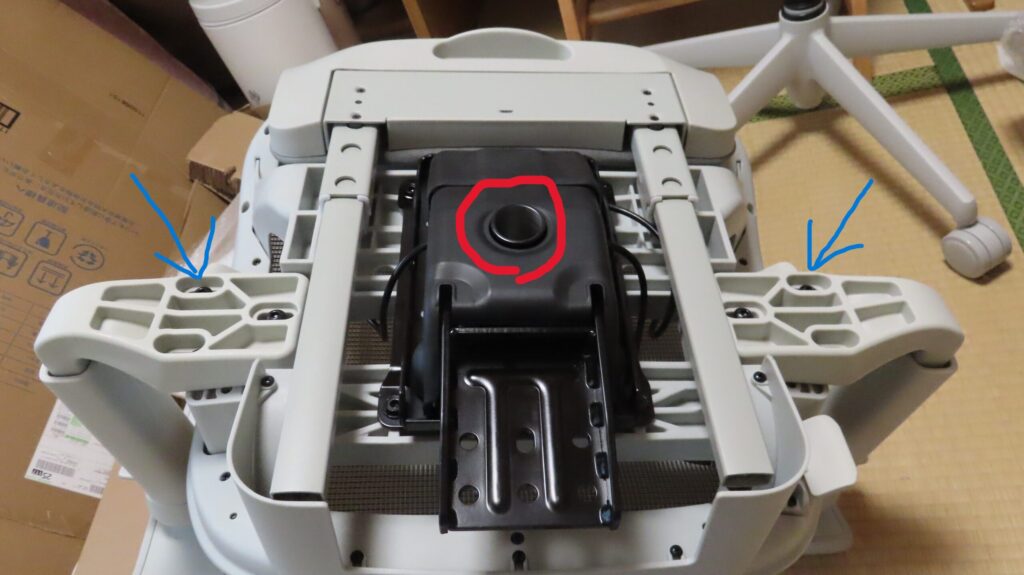アームレストと背もたれを取り付けて、上下反対の状態の座面を、