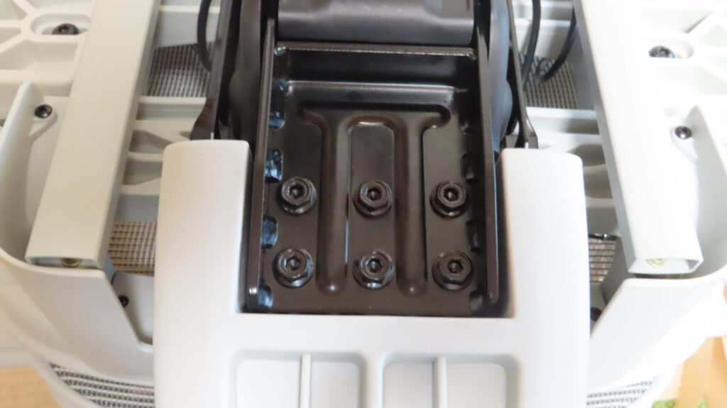 矢印のところに見える6つの穴にビスをねじ込み固定する。