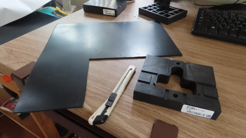 そこで、ホームセンターで厚さ2cmのスペーサーと、厚さ2mmのゴムシートを購入。