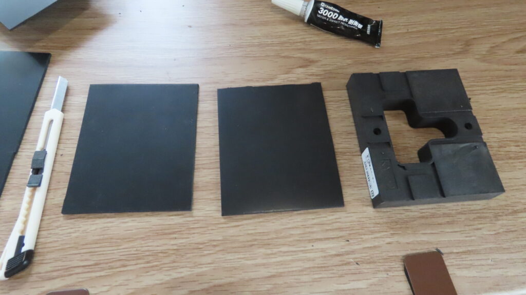 ゴムシートをスペーサーの形に合わせて切って・・・