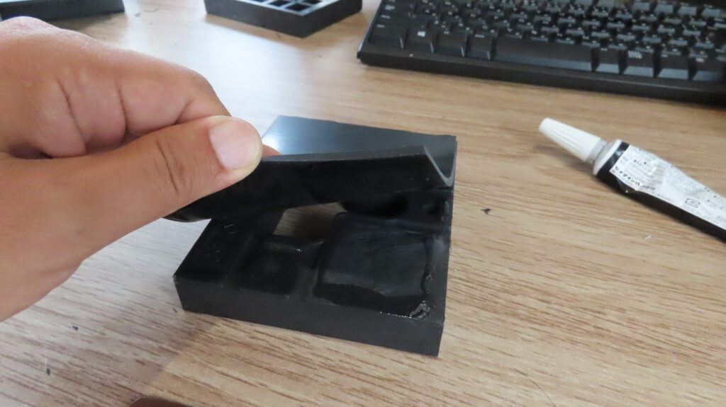 スペーサーの両面(必ず!)に、ボンドでゴムシートをはり付ける。